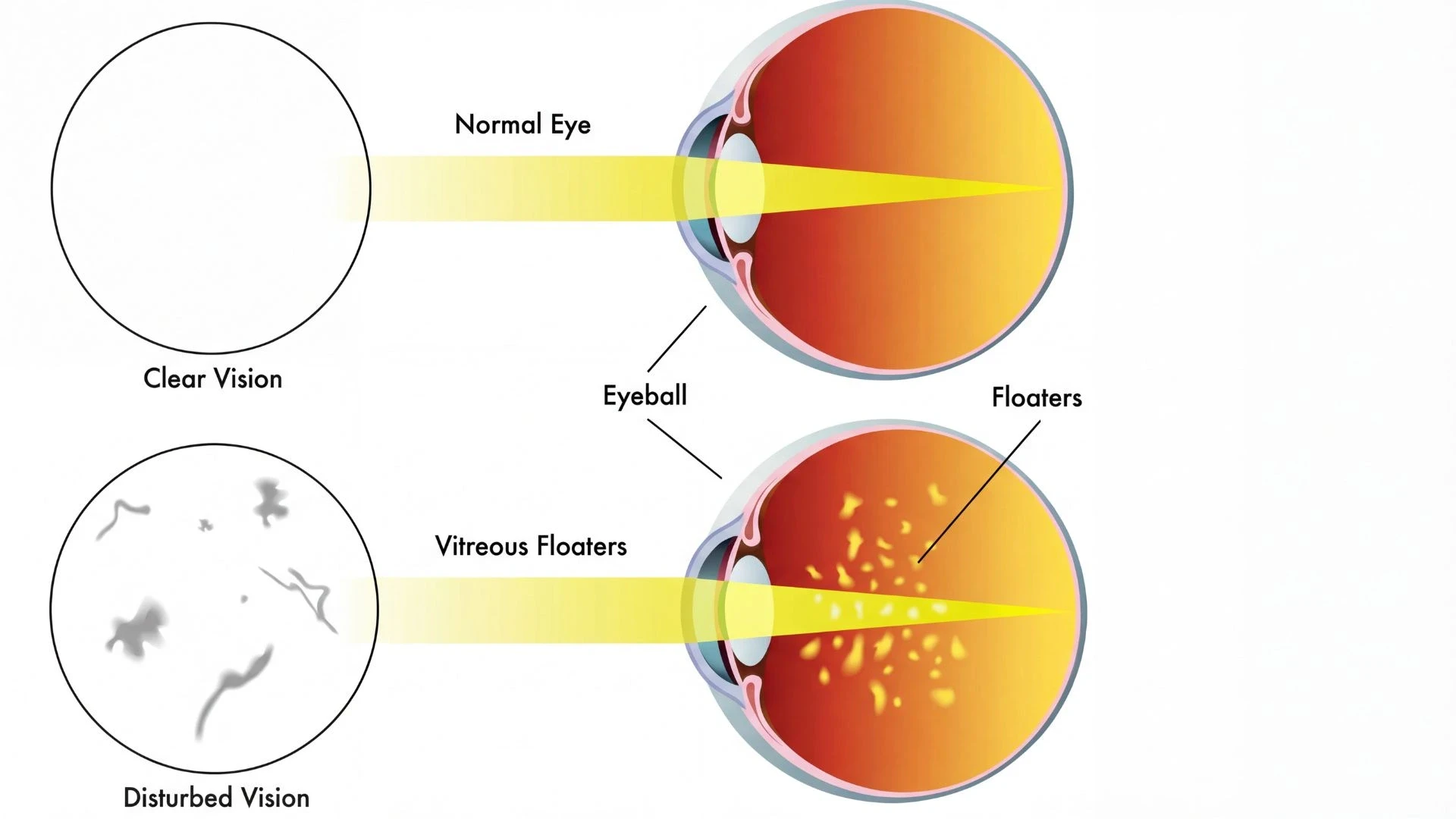 Floaters form when tiny clumps of gel or cells develop inside the vitreous, the clear, jelly-like substance filling the back of the eye. As the vitreous shrinks and liquefies with age, it can pull away from the retina and create shadows; these shadows are perceived as floaters.