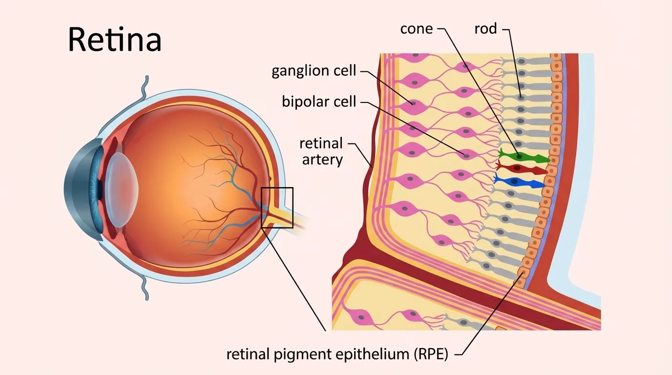 The retina is the light‑sensitive tissue lining the back of the eye, converting images into nerve signals. Conditions such as diabetic retinopathy, retinal detachment, macular degeneration and inherited retinal diseases can severely impair central or peripheral vision.