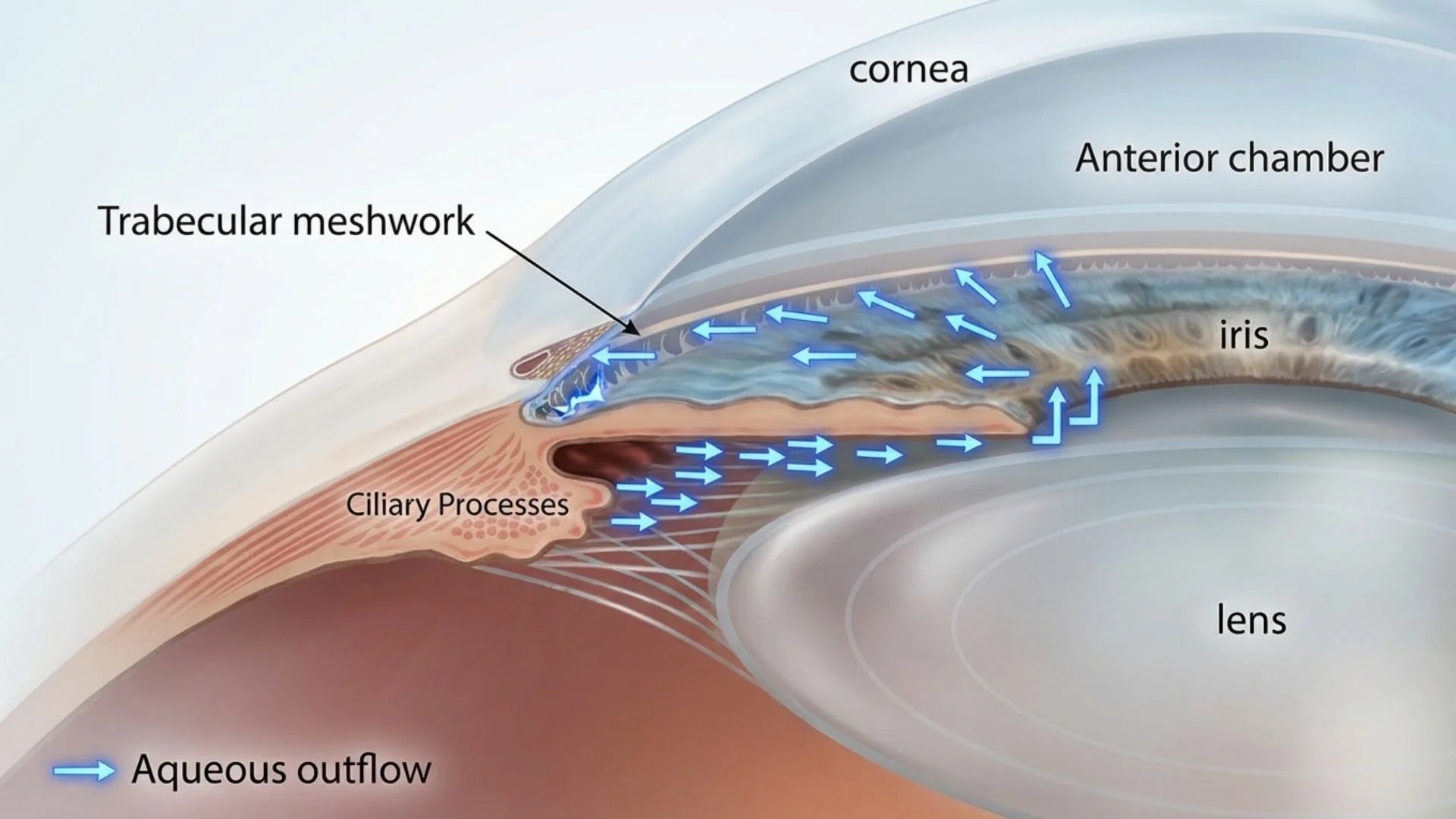 The pathology is generally driven by an imbalance in the production and drainage of aqueous humor. The eye constantly produces this fluid, which drains out through a specialized filter called the trabecular meshwork located at the angle where the cornea and iris meet.