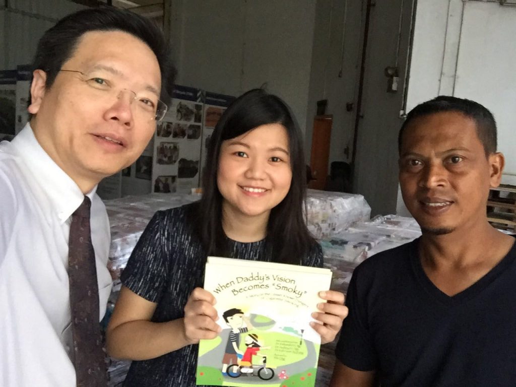 International Eye Cataract Retina Centre, through an educational grant from the Lee Foundation, donated 950 copies of “When Daddy’s Vision Becomes ‘Smoky’” to all 190 primary schools in Singapore. The books were delivered by optometrist Olga Aprianti Lee and Dr Au Eong Kah Guan to the Ministry of Education’s warehouse recently. It is hoped that school children who read the book will learn more about the ill effects of smoking and never be tempted to start smoking.
