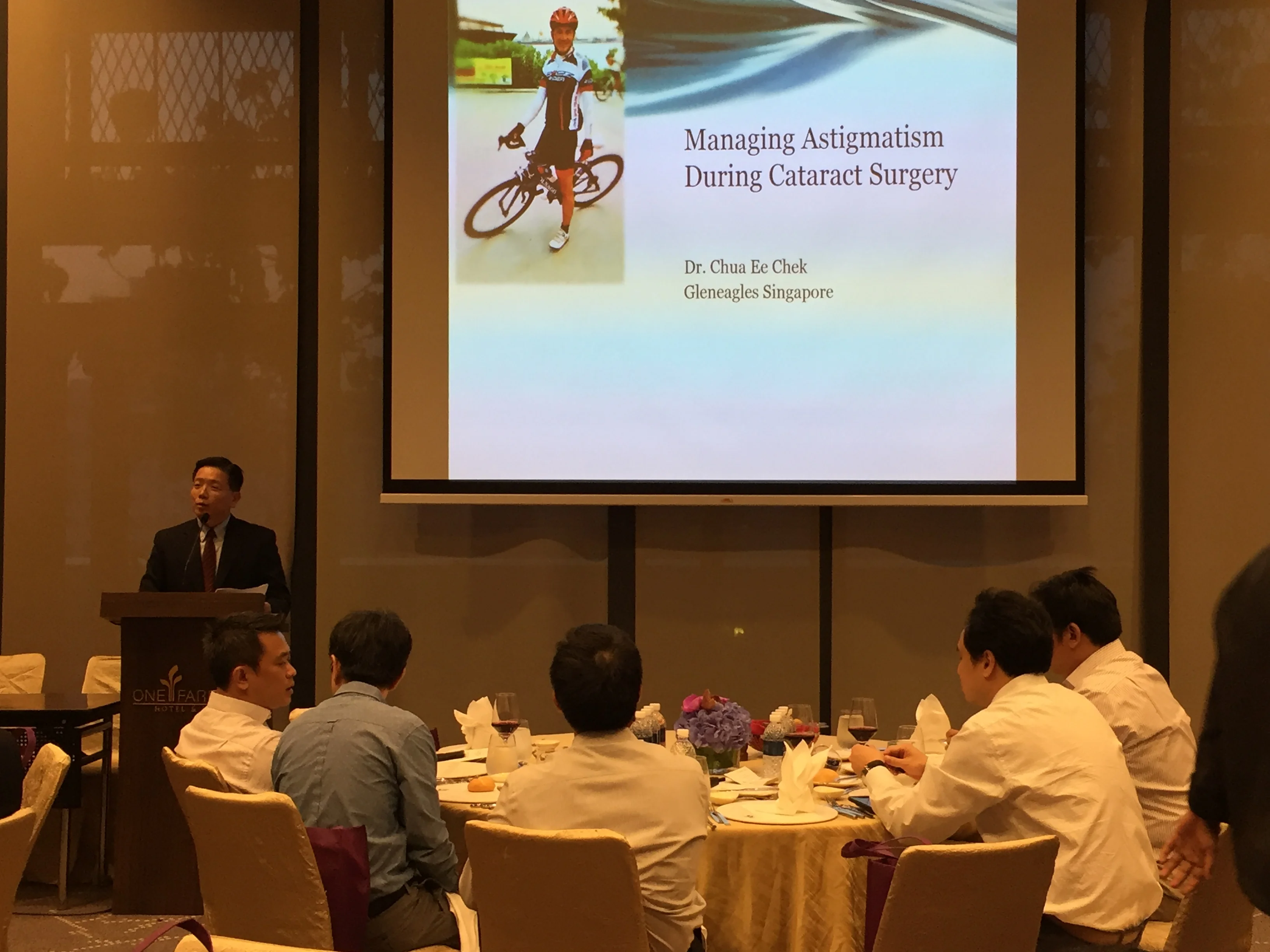 The symposium, titled “Advances in Computer-assisted Cataract Surgery”, discussed some of the art and science of advanced cataract surgery. The two speakers for the symposium were Dr Chua Ee Chek from Gleneagles Hospital and Dr Bobby Cheng from Farrer Park Hospital. Dr Chua shared some insights on “Managing Astigmatism during Cataract Surgery” while Dr Cheng spoke on “Computer-assisted Cataract Surgery with Toric Intraocular Lens Implantation”. The talks were followed with a lively question and answer session.