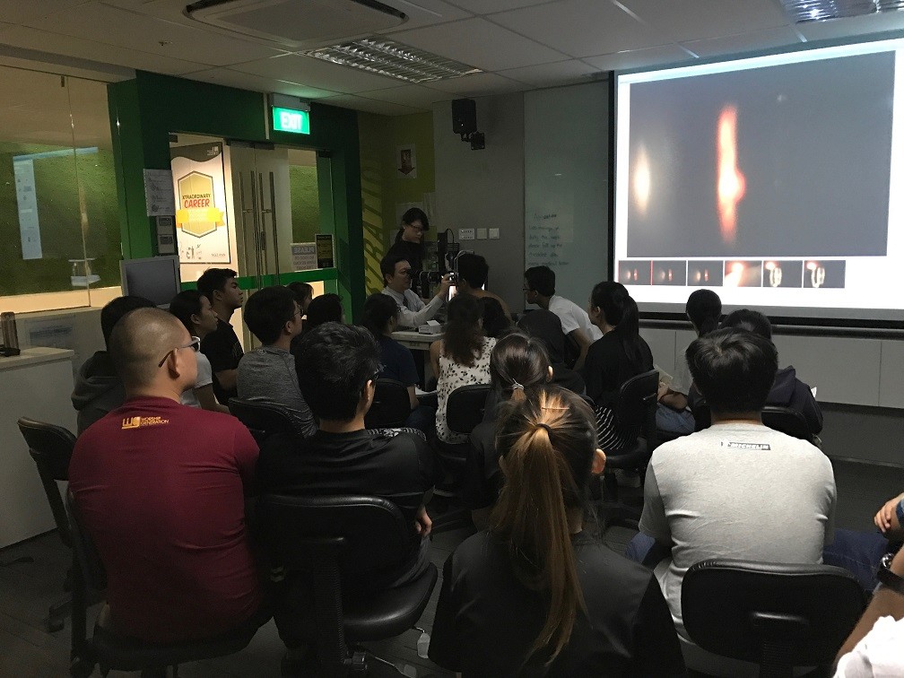 Students are taught retinal examination techniques during their Diploma in Optometry course in Ngee Ann Polytechnic. At the invitation of Ngee Ann Polytechnic Lecturer Ms Jessie Tan Sze Hui, Dr Au Eong Kah Guan, Medical Director and Senior Consultant in Singapore International Eye Cataract Retina Centre, gave a demonstration of the two commonly used retinal examination techniques to second year optometry students on 27 July 2017. Some of the students had one of their eyes dilated and were examined by Dr Au Eong and fellow students. Besides watching Dr Au Eong demonstrate the finer points of retinal examination, the students had hands-on practice on each other.