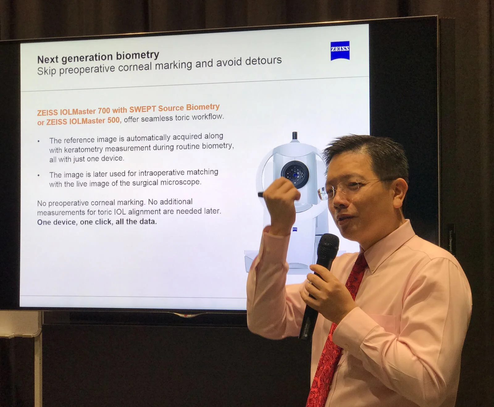 The Zeiss Cataract Suite is a collection of sophisticated ophthalmic equipment that are designed to work together for advanced cataract surgery. For example, the system allows the precise placement of special artificial lenses that corrects astigmatism, called toric intraocular lenses, without the use of pen markers. Using such advanced technology together with premium lenses improve the accuracy of lens placement and visual outcomes following cataract surgery.